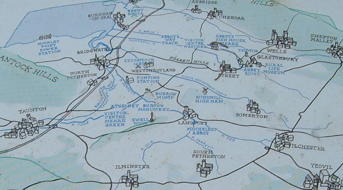 The area was once an inlet of the sea and the flood plain of five rivers. Over hundreds of years a wide coastal belt - "The Levels" was built from clays deposited by the sea and this restricted the river flows to the sea. The inland area - "The Moors"- thus became marsh, fen and bog. The river valleys became filled with peat deposits, which contain well-preserved remains from past activities from 4000 BC, including prehistoric trackways and lake villages. There are other historic associations with both King Alfred and the Monastries. This is the landscape which gave Somerset its name "the land of summer" a fertile land providing grazing for the animals in summer but largely covered with water and inaccessible in winter.